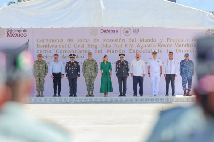 En el acto protocolario, el coordinador territorial de la Guardia Nacional Sur-Sureste, Saúl Luna Jaimes tomó protesta y dio posesión del cargo a Agustín Reyna Mendoza, como nuevo comandante del Mando Especial de la Guardia Nacional en Acapulco.