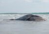 Expulsan olas del mar ballena muerta en estado de descomposición