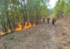 Continúan los trabajos para controlar y liquidar el incendio forestal que...