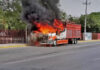 Incendian un camión torton en la carretera federal México-Acapulco en Iguala