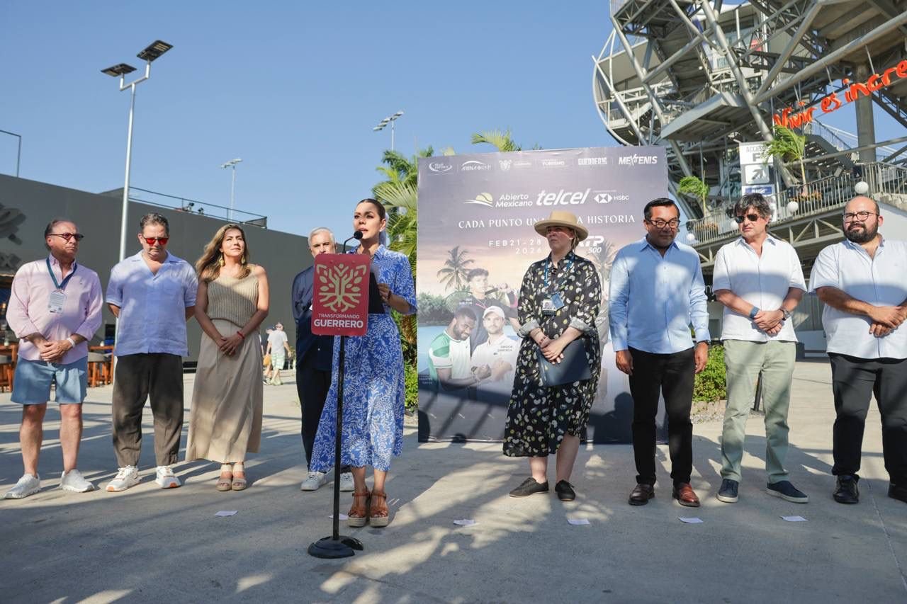 Acompañada por la presidenta del Consejo de Administración de Mextenis, Renata Burillo Gómez Haro, la mandataria estatal expresó su beneplácito por el inicio del Abierto Mexicano de Tenis, pues representa desarrollo y bienestar, impulsando el empleo, beneficiando directamente a miles de familias guerrerenses y fortaleciendo la economía local y la actividad turística.