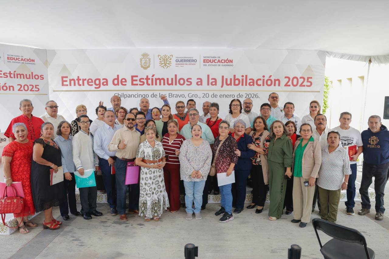 Con el reconocimiento a su labor profesional al servicio de la educación de niñas, niños y adolescentes de Guerrero, la gobernadora Evelyn Salgado Pineda entregó los estímulos a la jubilación 2025 a 878 trabajadoras y trabajadores de la educación, quienes concluyen una etapa con hasta 46 años de servicio en funciones docentes, directivos y administrativas.