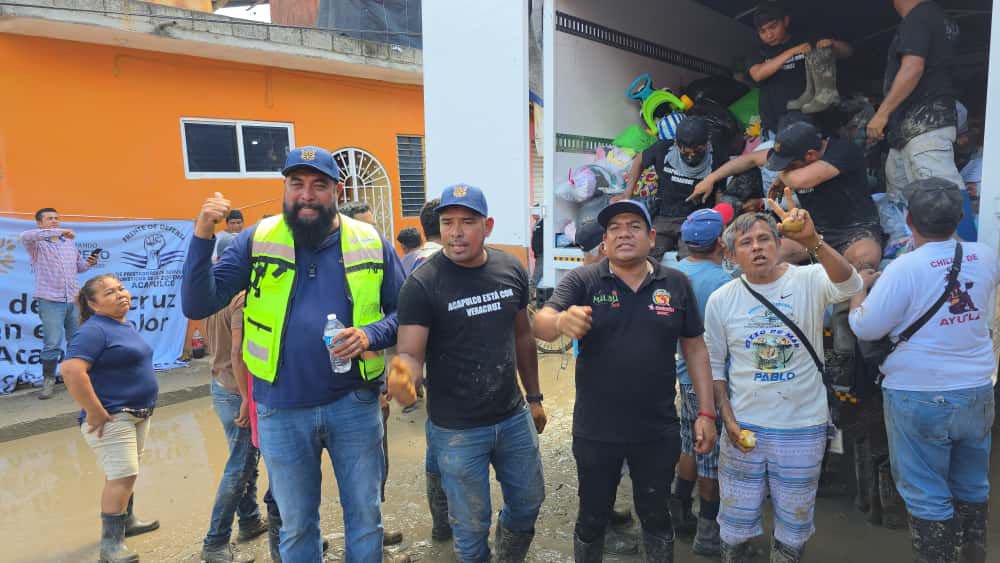 Tras 18 horas de camino y luego de entregar las más de 60 toneladas de ayuda humanitaria, integrantes del Frente de Defensa de los prestadores de servicios turísticos de Acapulco encabezados por su dirigente Jesús Zamora Cervantes y trabajadores de la Promotora de Playa realizaron tareas de limpieza en la comunidad de Ticoxtlan en el municipio de Álamo en Veracruz.