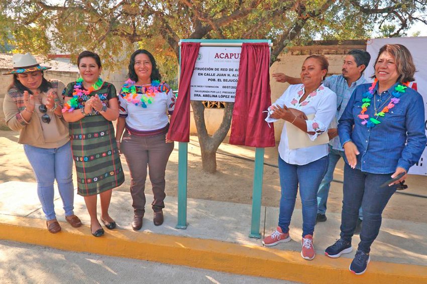 La presidenta municipal, Abelina López, inició su gira de trabajo en El Bejuco, donde inauguró la construcción de red de agua potable en la calle Juan N. Álvarez, con 111 metros de pavimentación por un monto de 1 millón de pesos.