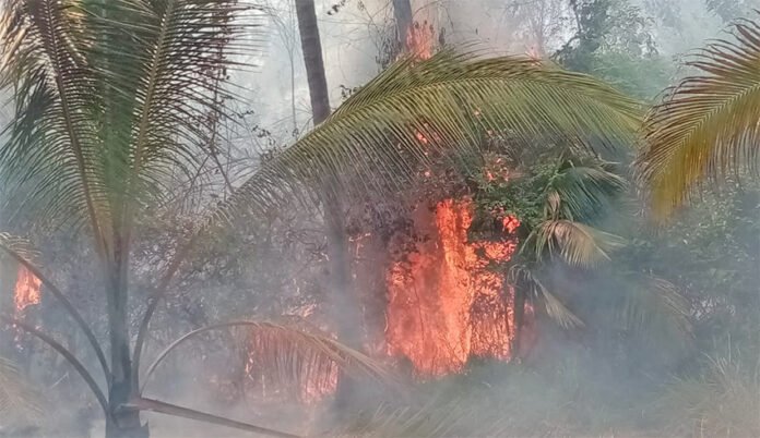 Un incendio de pastizales alcanzó una huerta de cocotero en la comunidad de Corral Falso perteneciente al municipio de Atoyac de Álvarez, afectando una gran cantidad de palmeras en una superficie de 4 hectáreas.