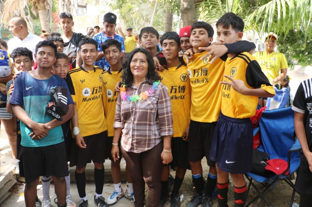 Fomentando el deporte y como parte de la celebración del Día del Niño, la presidenta municipal, Abelina López Rodríguez, junto a la titular de Bienestar y Desarrollo Comunitario, Leticia Lozano Zavala, encabezó la premiación del Torneo de Barrios Infantil en el deportivo Coloso.