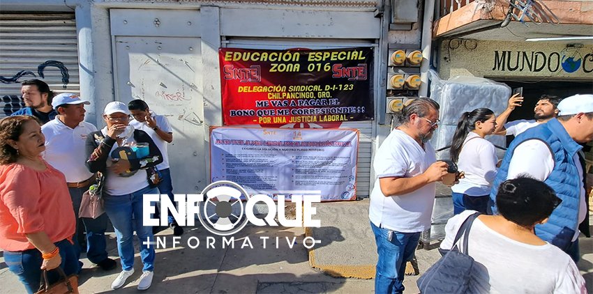 Para protestar por la falta del pago del bono de Integración Educativa, maestros del Sindicato Nacional de Trabajadores de la Educación (SNTE), tomaron la delegación de Servicios Educativos de la región Centro en Chilpancingo; bloquean la avenida Vicente Guerrero.