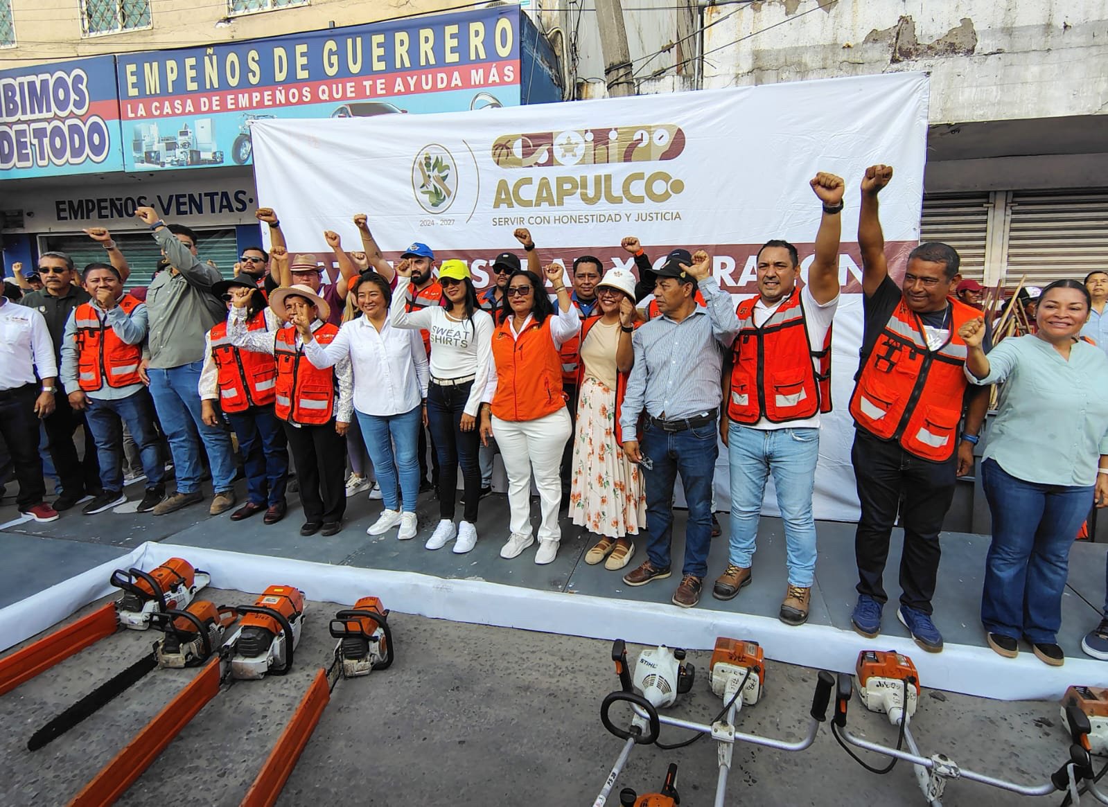 En el Mercado Central sobre la avenida Diego Hurtado de Mendoza, la presidenta municipal, Abelina López Rodríguez, dio inicio a la brigada de servicios “Paz, honestidad y corazón”, que integra a más de mil trabajadores y voluntarios en un esfuerzo coordinado para preservar y mejorar la infraestructura urbana de Acapulco.