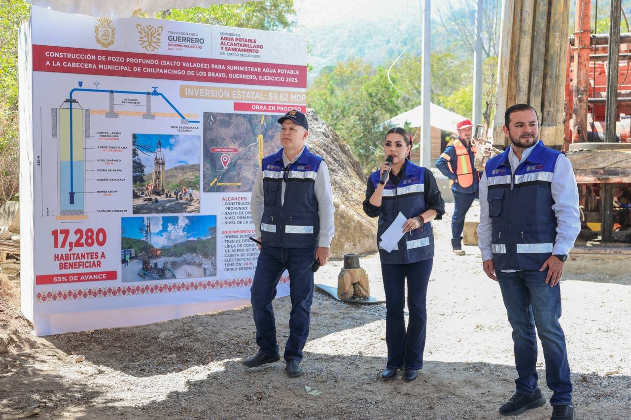 Garantizar el acceso al agua potable es una prioridad para el gobierno que encabeza la gobernadora Evelyn Salgado Pineda, quien supervisó los avances en la construcción del Pozo Profundo «Salto Valadez», ubicado en la comunidad de Mazatlán, municipio de Chilpancingo, el cual incrementará el abasto de agua potable en la capital del estado.